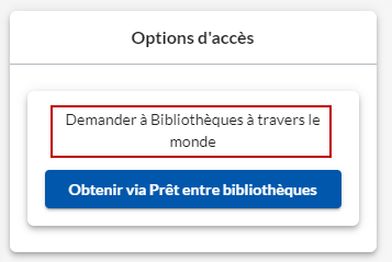 - Cliquer sur Obtenir via Prêt entre bibliothèques.