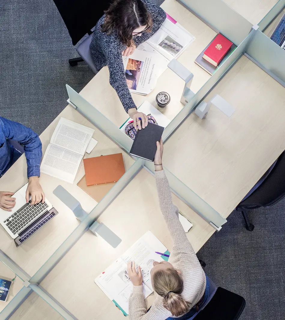 Salles individuelles réservables, salles communes équipées de casiers pour votre documentation: l’offre varie d’une bibliothèque à l’autre, consultez le répertoire!